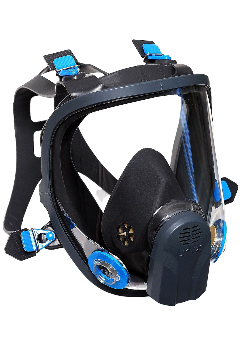 Продажа и поставка оптом полнолицевой маски UNIX 6100 с панорамным стеклом корпусом. Лицевая часть оборудована двумя штыковыми креплениями байонет для быстрого соединения и отстыковки очищающих фильтров. С установленными фильтрами обеспечивает защиту органов дыхания, лица и глаз от воздействия паро- и газообразных вредных веществ.